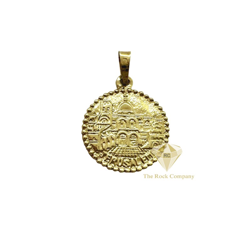 Embrace faith and heritage with this exquisite 14k gold round Jerusalem pendant, designed with a Jerusalem Cross on one side and a beautifully detailed engraving of the Old City of Jerusalem on the other. Handcrafted with devotion, this pendant is a meaningful piece of luxury Christian jewelry that connects you to the Holy Land.