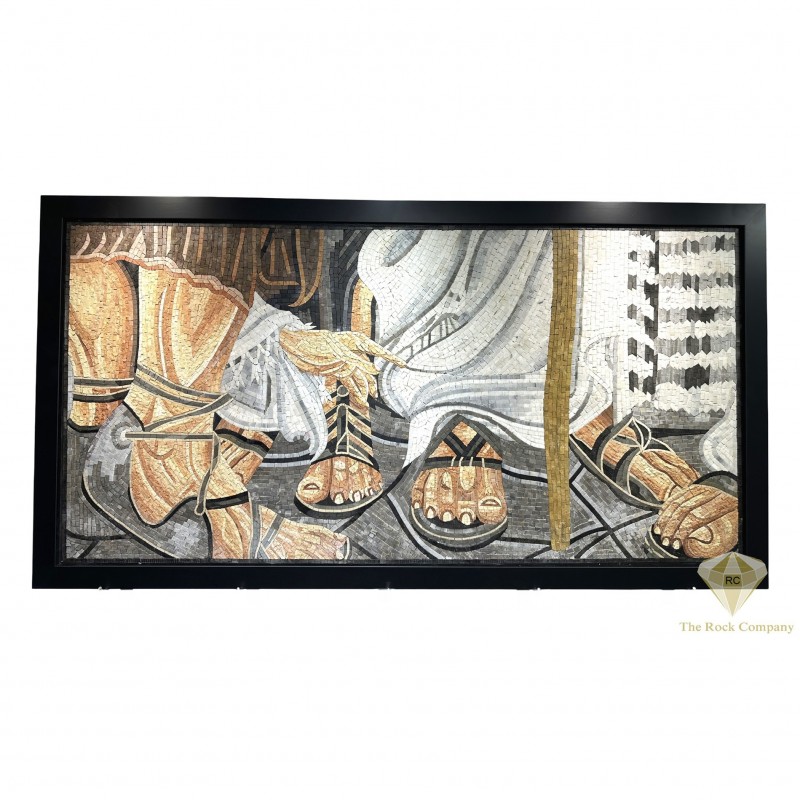This unique mosaic inspired by Magdala portrays only the feet of Jesus, capturing a powerful and intimate biblical moment. The image reflects humility, devotion, and repentance, often associated with the woman who anointed Jesus’ feet in the Gospel account. By focusing solely on the feet, the artwork emphasizes surrender, faith, and reverence, inviting quiet reflection and spiritual depth.